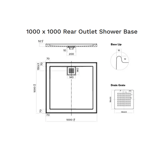 1000 x 1000 POLYMARBLE SHOWER BASE - rear outlet waste